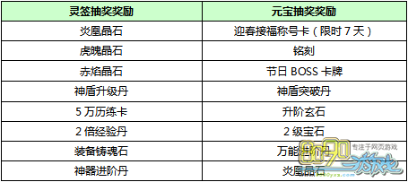 【活动内容】活动期间玩家可使用灵签及元宝进行抽奖,增加气氛值,使用灵签与元宝增加的气氛值不等,总气氛值达到一定值可触发全服打怪双倍经验,玩家抽奖次数有限,VIP等级越高次数越多,抽奖可随机获得超值奖励。