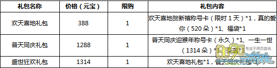 【活动内容】活动期间,玩家可以购买以下三个礼包,每个礼包每次限购一次。