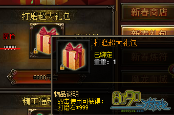 活动内容:活动期间,玩家可花费元宝购买超值礼包!其中有首次出现的打磨石礼包以及精工石超值礼包哦!