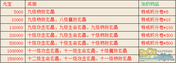 活动期内累计充值达到下列额度可以领取相应的超级玄晶大礼包