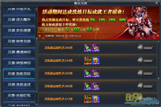 洗炼极品属性达312条,即可获得“洗炼收藏家”称号,全部洗炼属性提高20%