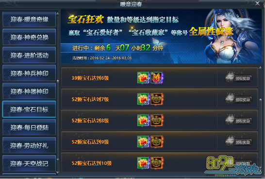 52颗宝石达到8级,即可获得“宝石鉴赏者”称号,全部宝石属性提高10%