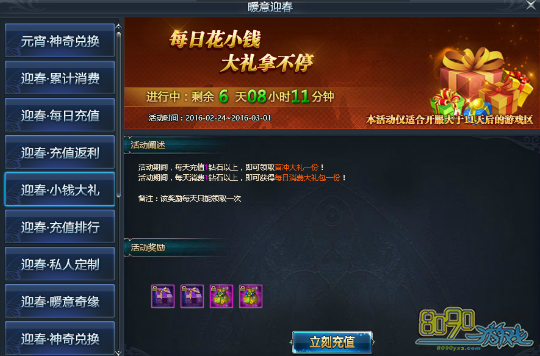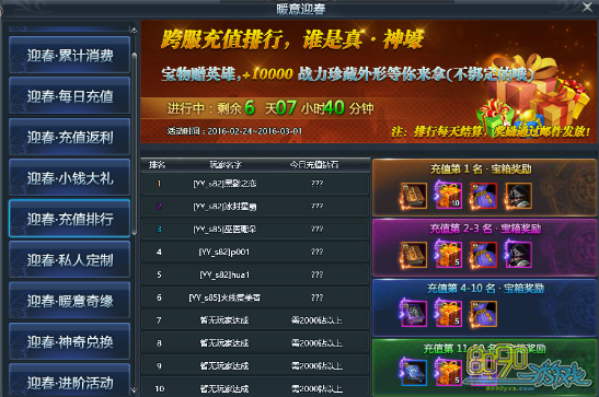 【活动内容】:活动期间,史无前例的充值返利活动到来!你充值,我白送,疯狂返利!