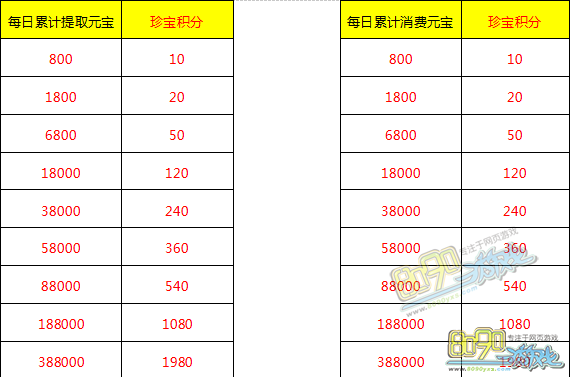每日累计提取元宝珍宝积分 每日累计消费元宝珍宝积分