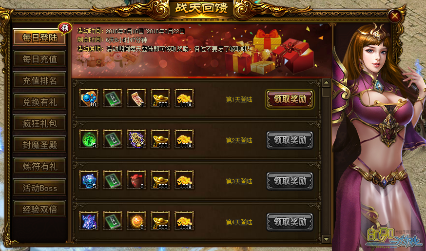 活动内容:活动期间每天登陆即可领取奖励。