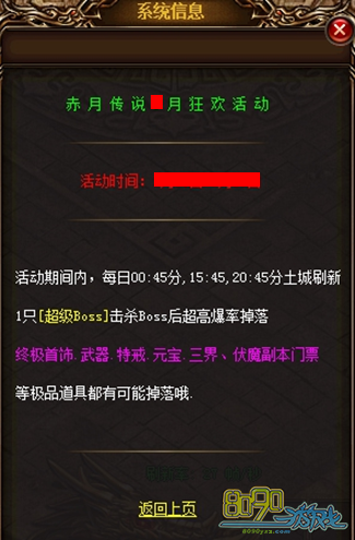 【活动内容】活动期间,每天指定时间会在土城刷新1只超级boss