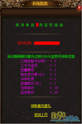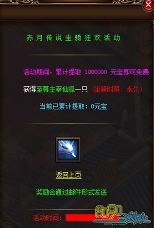 【活动内容】活动期间,每天充值累计1000元宝即可获得奖励