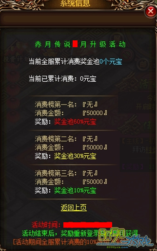 【活动内容】活动期间本服消费前三并且满足消费50000元宝以上的玩家可以获得奖金池的元宝奖励