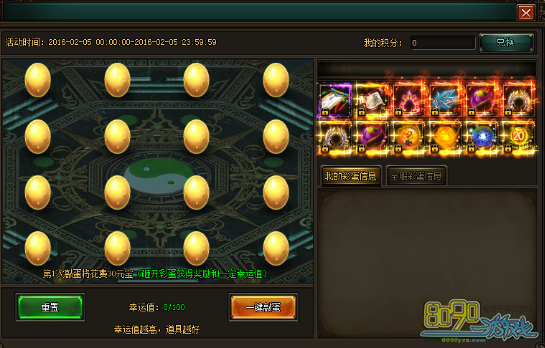 活动内容:玩家花费30元宝就能砸开彩蛋,神剑幻化、极品装备、稀有道具等你获得!