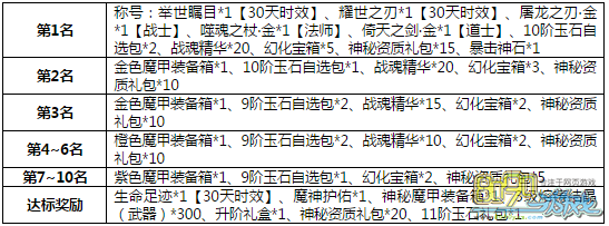 活动内容:活动结束后,举世瞩目活动排名前3的玩家将在登陆界面荣耀展示。