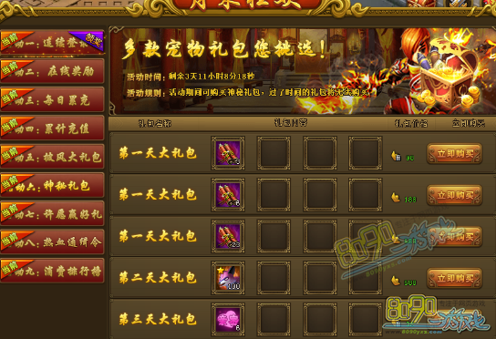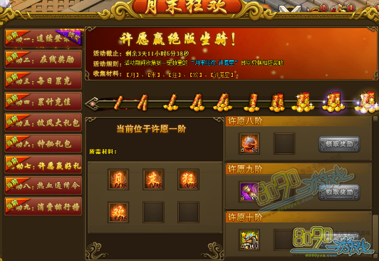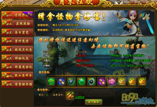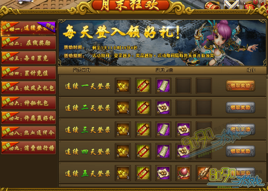 搜索"8090网页游戏"活动一、连续登陆领好礼