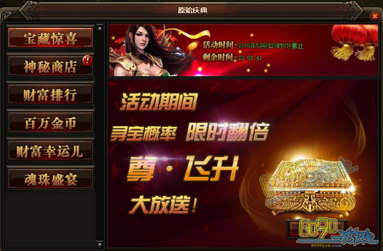 活动详情:活动期间在游戏寻宝界面进行寻宝,寻宝概率大大提升,而且终极装备的寻宝产出几率也会大大提升。