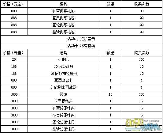 4. 活动八中的系统为:神翼、圣灵、圣轮、坐骑;
