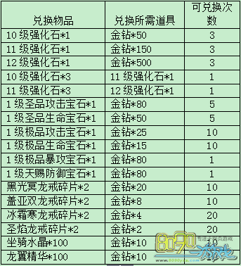 10000金币:金钻*20、1000潜能*160、8级强化石*1、龙戒精炼伤害石*40、龙戒精炼防御石*40