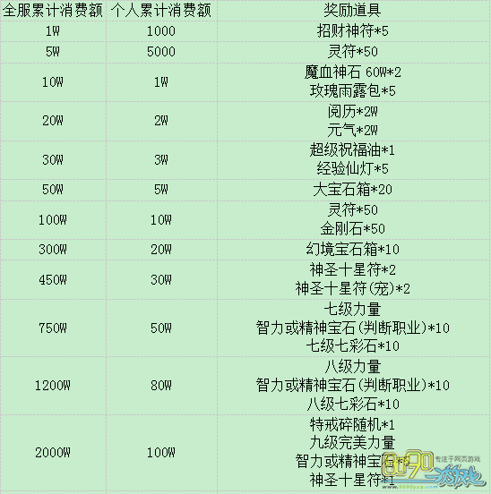 活动内容:活动期间内,在龙城【月中活动使者】NPC处,个人累计消费和全服累计消费均达标的玩家可以领取对应奖励,内容如下: