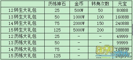 活动内容:活动期间玩家可以在龙城【月中活动使者】NPC处购买转生奉献大礼包