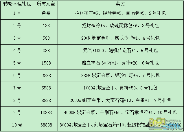新增:转轮幸运礼包可以开出“转轮幸运礼包②”,最多开出⑩号