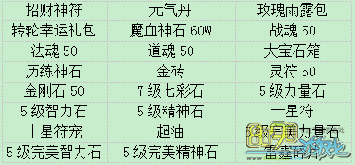 注:每种礼包每位玩家只能购买一次