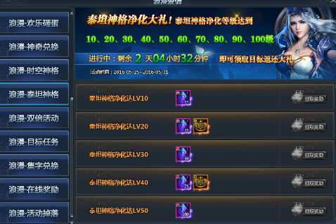 泰坦神格净化达LV50,即可获得神格净化石*100