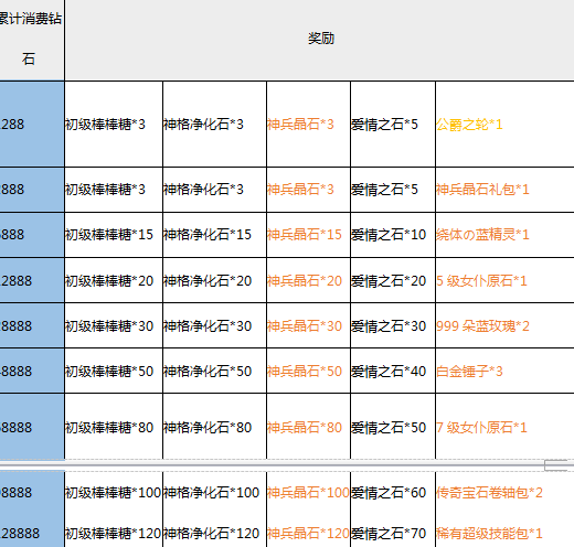 【活动内容】:活动期间累计消费达到一定额度即可全面返还豪礼!大量初级棒棒糖、神格净化石、公爵之轮、爱情之石、稀有超级技能包,极品道具不可错过!