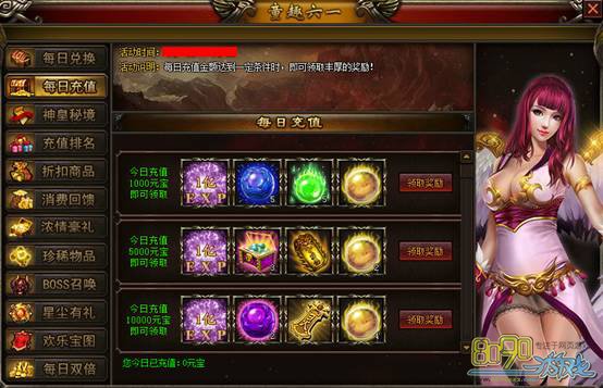 【活动说明】:每日充值金额达到一定条件时,可领取一份奖励。