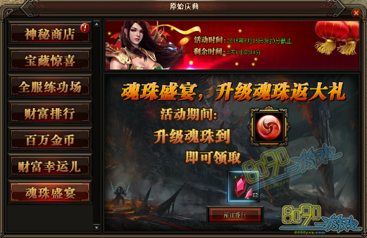 活动详情:升级魂珠返大礼,活动期间升级魂珠即可领取对应奖励