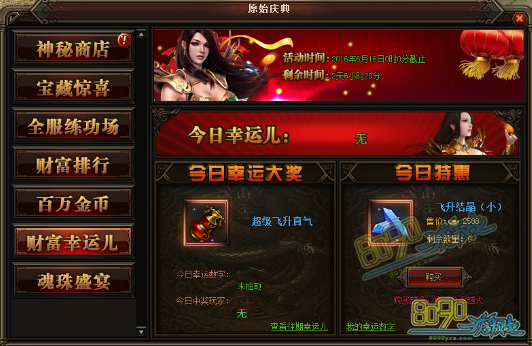 活动详情:活动期间玩家可在今日特惠里以优惠的价格购买相应的道具,每购买一次便可获得相应的一个幸运数字。系统会随机抽取一个幸运数字,每日21:00开奖,如果被系统抽到的幸运玩家就可获得今日幸运大奖,数量有限先到先得。