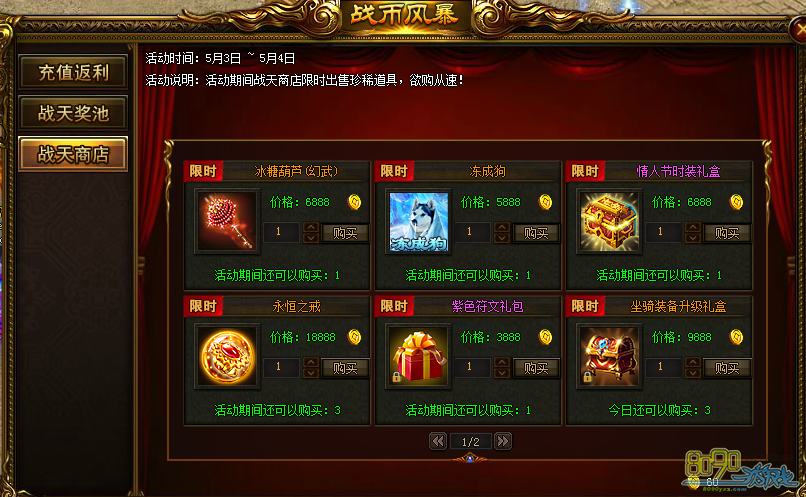 活动内容:活动期间战天商店出售珍稀道具!欲购从速!