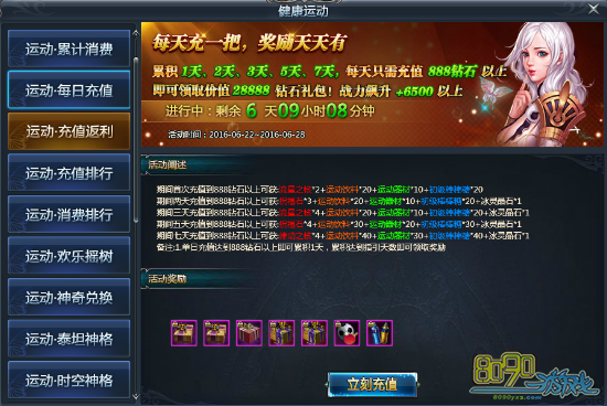 搜索"8090网页游戏"活动一:健康运动·每日登陆