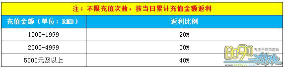 活动期间内,玩家累计充值达到相应条件还可再次领取相对应的档次奖励。