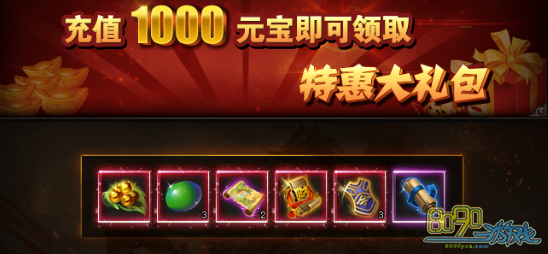 充值有礼:活动期间,每日充值1000元宝即可领取对应的礼包奖励