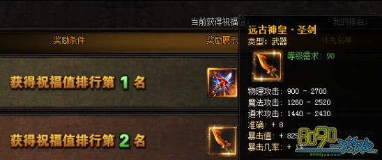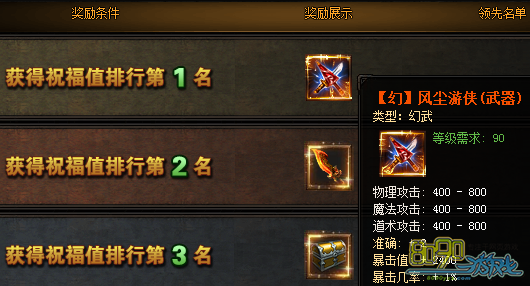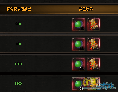 祝福豪礼:活动期间,使用祝福石获得的祝福值到达4000点,既可参加排名,排名前三的玩家才能获得排名奖励