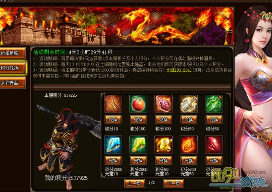 A.活动期间,玩家每消费1元宝获得1点本服积分及个人积分,个人积分可在活动面板兑换道具。