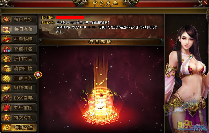【活动内容】:活动期间,每天14:00 – 18:00,可享受打怪获得经验和符文值双倍加成的福利!活动第1天,更可享受全天烤火双倍!