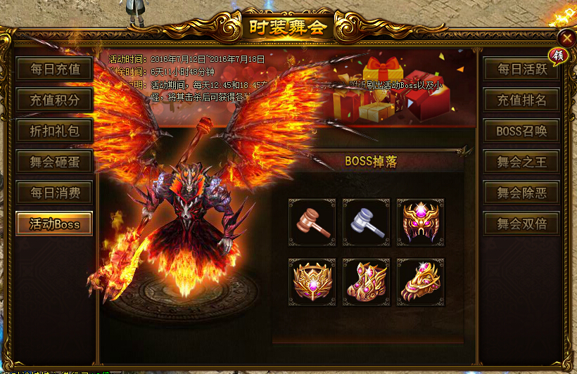 活动期间限时出售黄金Boss召唤令,击杀后掉落高级Boss召唤令,极品道具拿到手软!