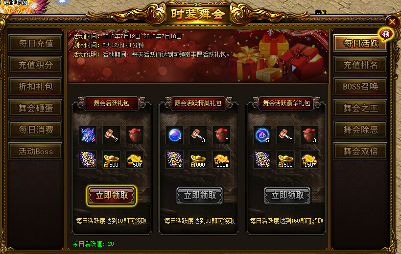 活动期间,每天活跃值达到一定条件可领取丰厚奖励!