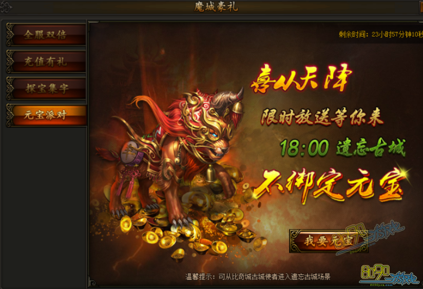 • 传奇霸业8月19-23日元宝派对 限时放送等你来