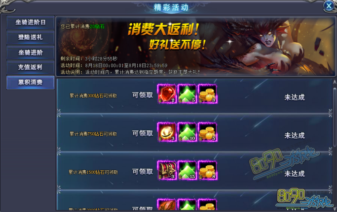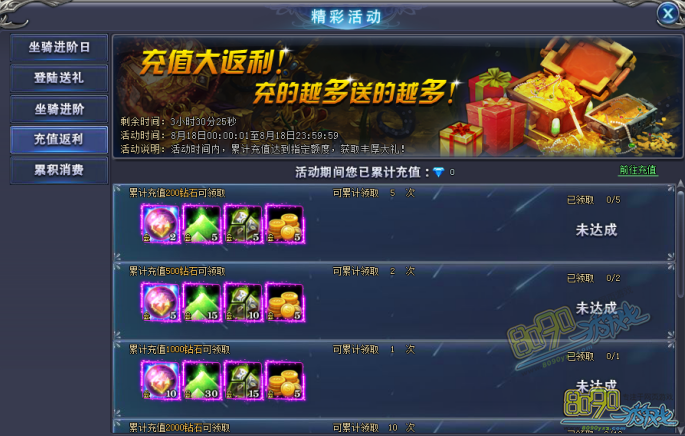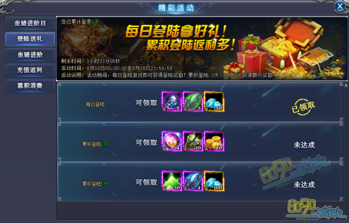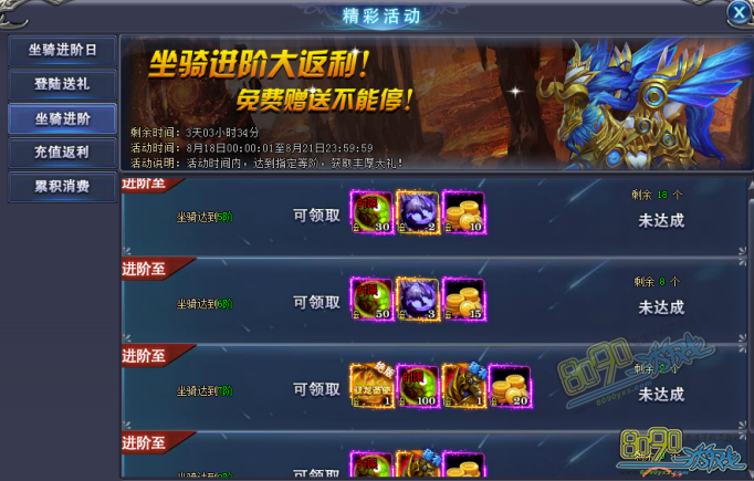 搜索"8090网页游戏"【活动名称】坐骑进阶日
