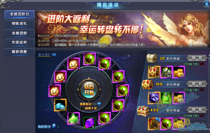 【活动奖励】坐骑进阶主题转盘,可获得丰厚的坐骑道具