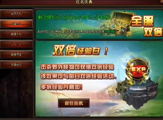活动期间击杀野外怪物可获得双倍经验