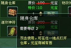 战神传奇中背包小的确是一个令人头疼的问题。解决这个问题的一个选择是去商城买随身仓库,随时随地可以打开仓库,商城仅售80元宝,可是万一仓库也满了呢?这时,巧妙利用游戏中的各种附加系统,可以隐形地扩大自己的包裹哦。