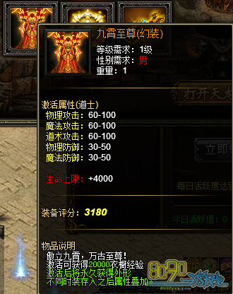 活动内容:活动期间,累计充值排名前4的玩家在活动结束时可获得相应的充值排名豪礼!温馨提示:排名奖励将在活动结束时邮件发放!请留意查收。(1RMB=100元宝)