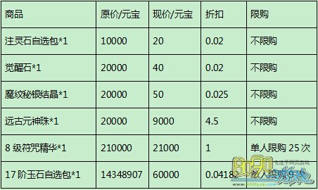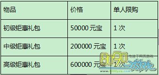 活动内容:活动期间内,可使用元宝购买特惠礼包。