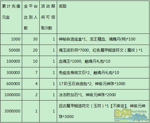 活动内容:活动期间内,每充值5000元宝即可获得1次抽奖机会,每次抽奖还将获得1积分。积分奖励已经全面更新。