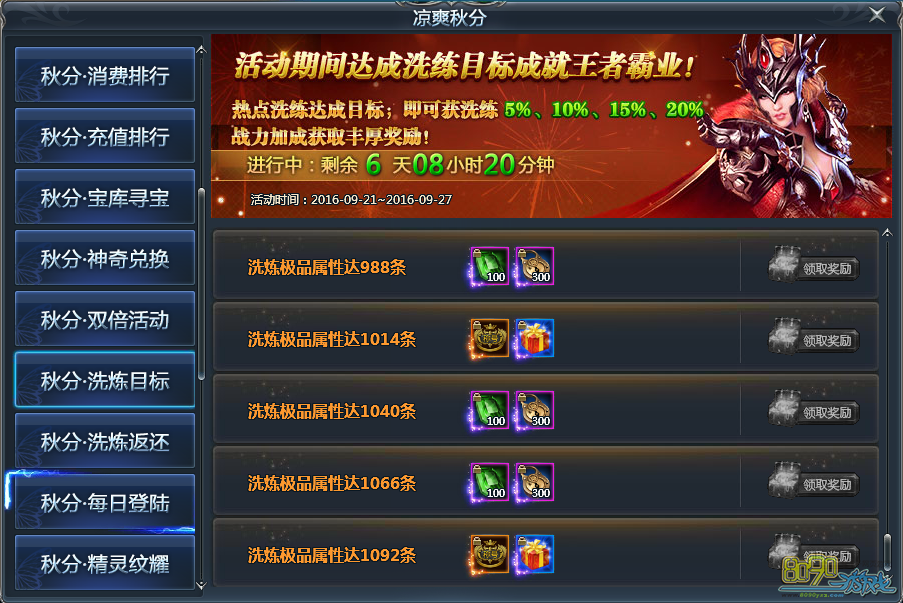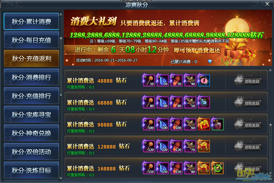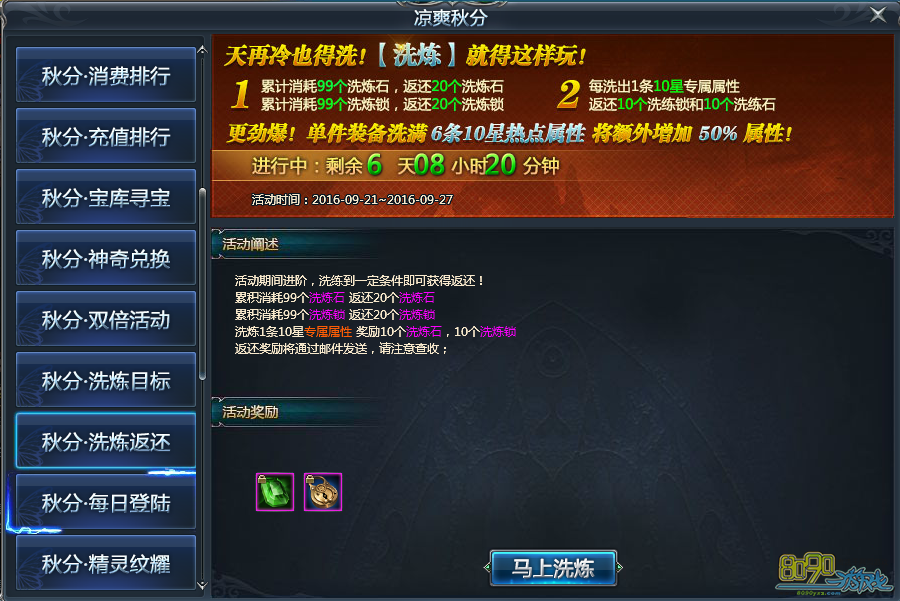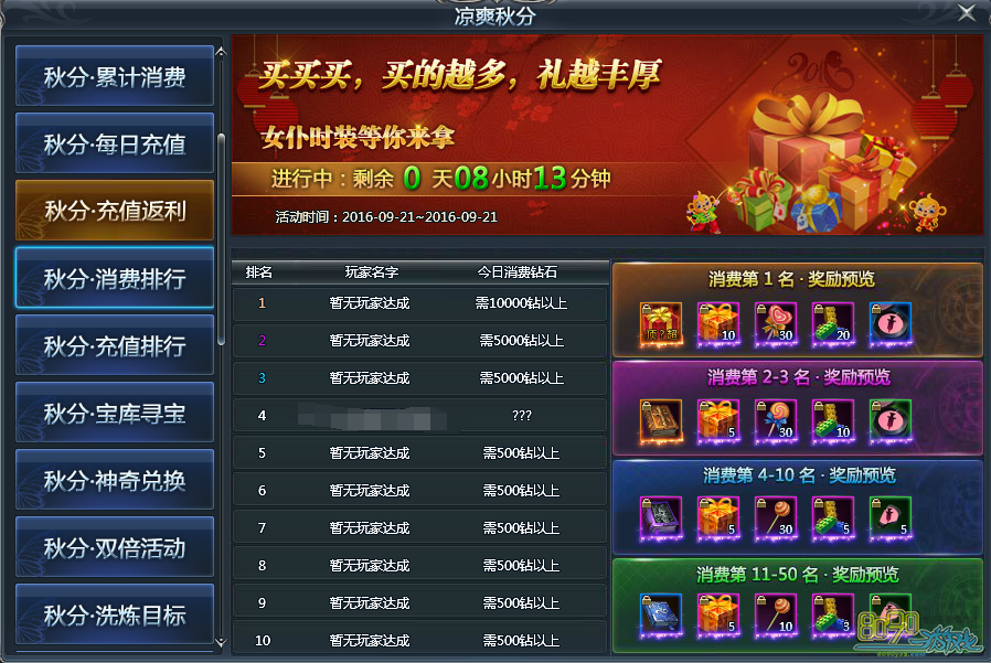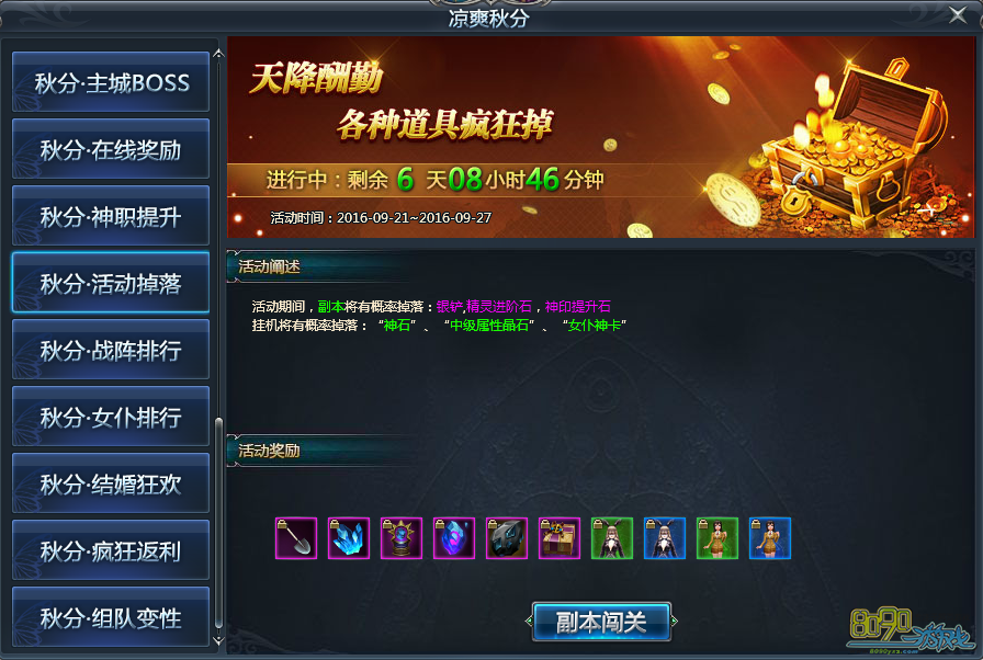 搜索"8090网页游戏"活动一:凉爽秋分·在线奖励