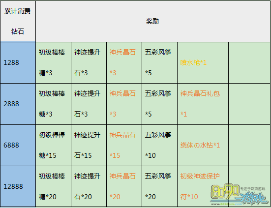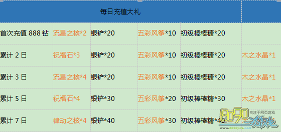 备注:1.单日充值达到888钻石以上即可累积1天,累积达到指引天数即可领取奖励
