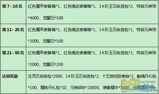 活动内容:活动期间内,累计消费200000充值元宝即有资格进入全平台排名,并领取达标奖励。活动结束后以邮件形式发放排名奖励,达标奖励需要手动领取。