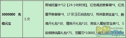 活动内容:活动期间内,每充值10000元宝即可领取1个庆典魔甲装备箱。