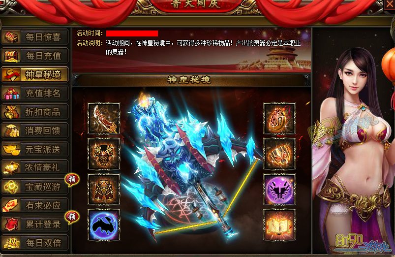 【活动说明】:活动期间,探宝时可获得多种珍稀物品!获得的灵器必定是本职业的灵器。