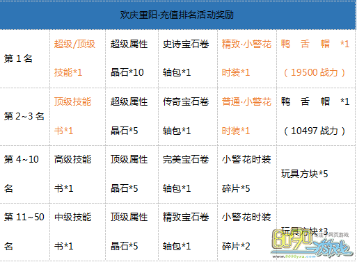 活动四:欢庆重阳·充值排行